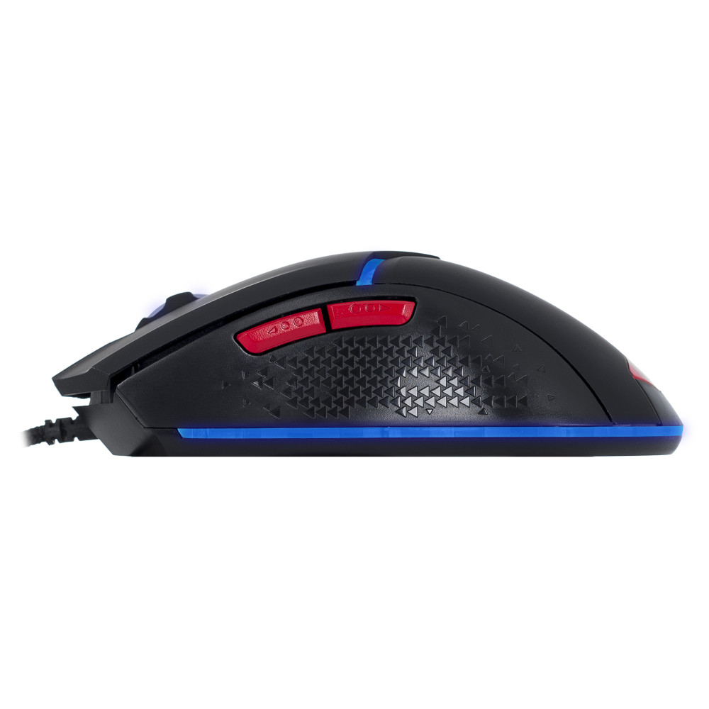 Перемикач DPI (800/ 1600/ 2400/ 3200) дає змогу налаштувати мишу під будь-які геймерські завдання, а зручне прогумоване колесо прокрутки та додаткові бічні клавіші «Вперед» і «Назад» полегшують гру. Кнопки витримують понад 3 мільйони натискань.