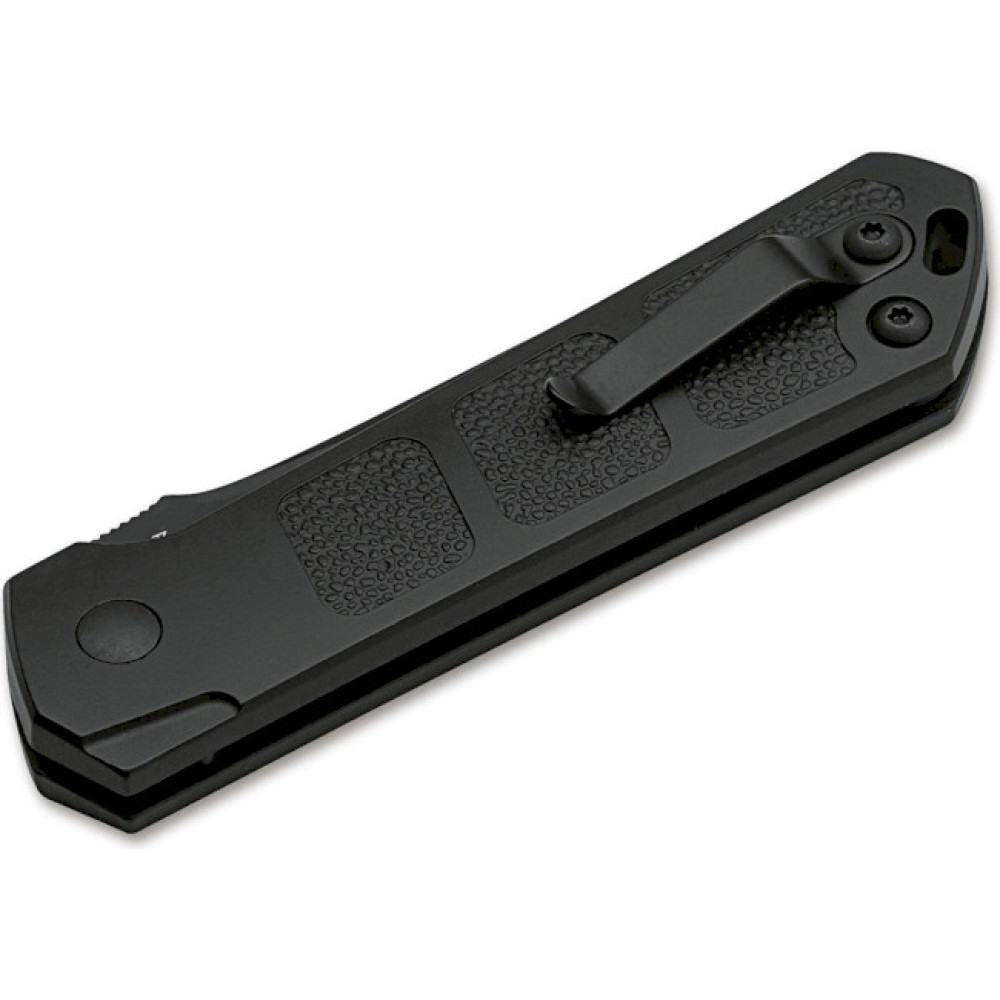 Клинок має знижену лінію обуха (Drop point), виготовлений з японської сталі AUS-8, що зберігає баланс між високими нержавіючими і хорошими зносостійкими характеристиками, і, в залежності від моделі, може мати чорне покриття або Stonewash. Біля основи обуха передбачений упор для великого пальця - з невеликими насічками. Витяг клинка відбувається автоматично при натисканні кнопки на рукоятці. Накладки рукояті виконані з анодованого алюмінієвого сплаву з текстурованими елементами дизайну, які не тільки надають ножу деяку елегантність, але і сприяють його більш впевненому утриманню. Для комфортного носіння передбачена кишенькова кліпса і отвір під темляк.